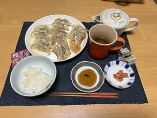 閑話休題。タイ産のデンマーククッキー(謎)と、大阪王将の冷凍餃子定食です(^^